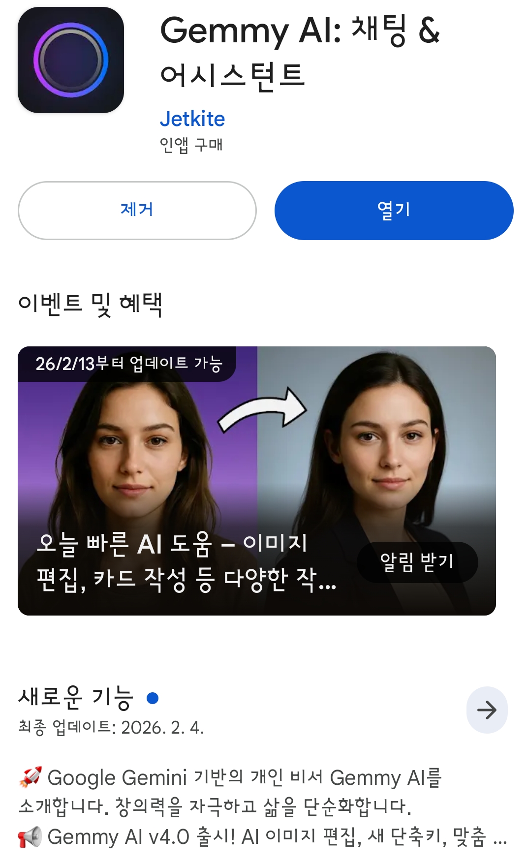 이 어플은 구글 제미니의 이름과 비슷하게 하여 결제유도성 스팸 어플이므로 주의하여야 합니다.