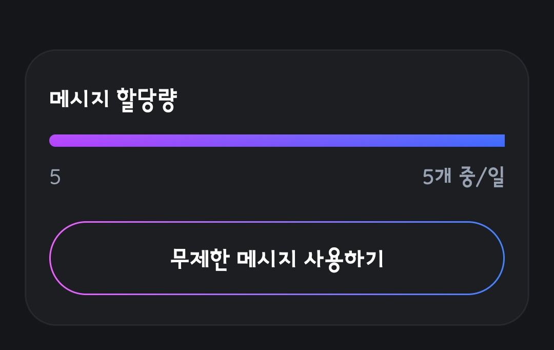 가장 황당한 점은 세 번째 사진의 '메시지 할당량'입니다. 하루에 5개의 메시지를 쓸 수 있다고 표시되어 있지만, 실제로는 간단한 메시지조차 보낼 수 없습니다.