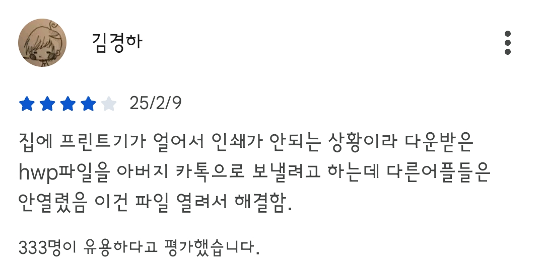 "다른 어플에서 열리지 않던 HWP 파일이 이 앱에서는 완벽하게 열린다"는 실사용자들의 후기가 이 앱의 안정성을 증명해 줍니다.